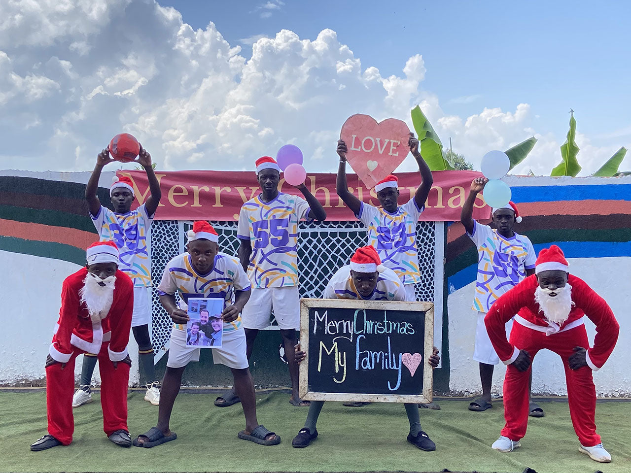 Afrikanische Fußballband wird für Sie singen, tanzen und Sie grüßen. Sie können bis zu 20 Wörter auswählen, die sie vortragen werden und bis zu 15 Wörter wählen, die sie auf die Tafel schreiben. Außerdem können Sie ein Bild hinzufügen, welches in die Kamera gezeigt wird.