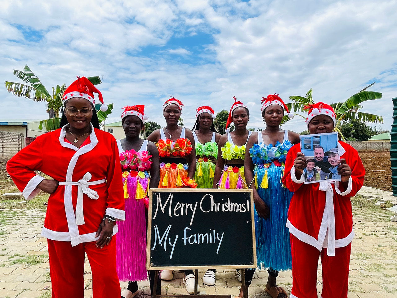 Afrikanische Grasrockmannschaft wird für Sie singen, tanzen und Sie grüßen. Sie können bis zu 20 Wörter auswählen, die sie vortragen werden und bis zu 15 Wörter wählen, die sie auf die Tafel schreiben. Außerdem können Sie ein Bild hinzufügen, welches in die Kamera gezeigt wird.
