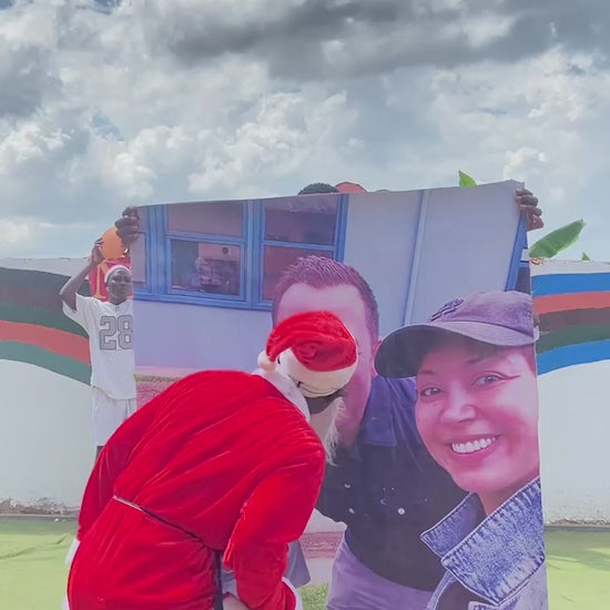 Afrikanische Rugby-Band wird für Sie singen, tanzen und Sie grüßen. Sie können bis zu 20 Wörter auswählen, die sie vortragen werden und bis zu 15 Wörter wählen, die sie auf die Tafel schreiben. Außerdem können Sie ein Bild hinzufügen, welches in die Kamera gezeigt wird.