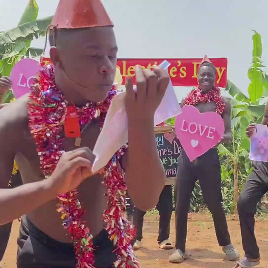 Afrikanisches Fitness Team wird für Sie singen, tanzen und Sie grüßen. Sie können bis zu 20 Wörter auswählen, die sie vortragen werden und bis zu 15 Wörter wählen, die sie auf die Tafel schreiben. Außerdem können Sie ein Bild hinzufügen, welches in die Kamera gezeigt wird.