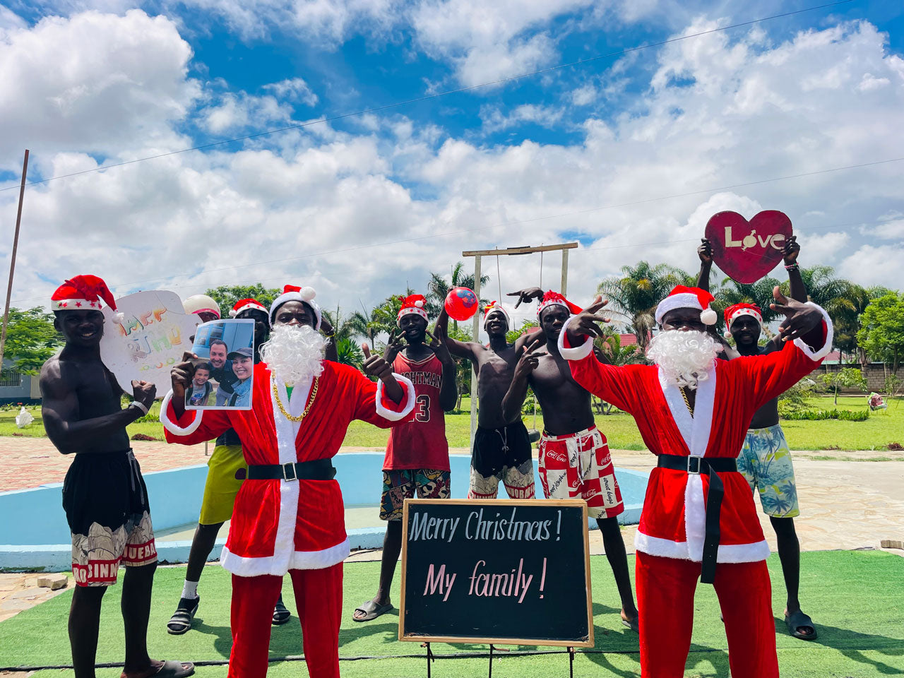 Die Afrikanisches Strandteam wird für Sie singen, tanzen und Sie grüßen. Sie können bis zu 20 Wörter auswählen, die sie vortragen werden und bis zu 15 Wörter wählen, die sie auf die Tafel schreiben. Außerdem können Sie ein Bild hinzufügen, welches in die Kamera gezeigt wird.
