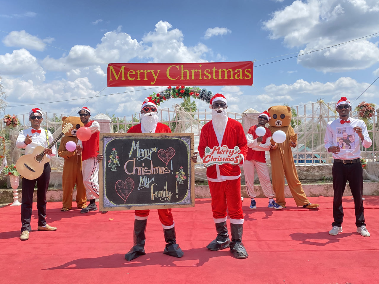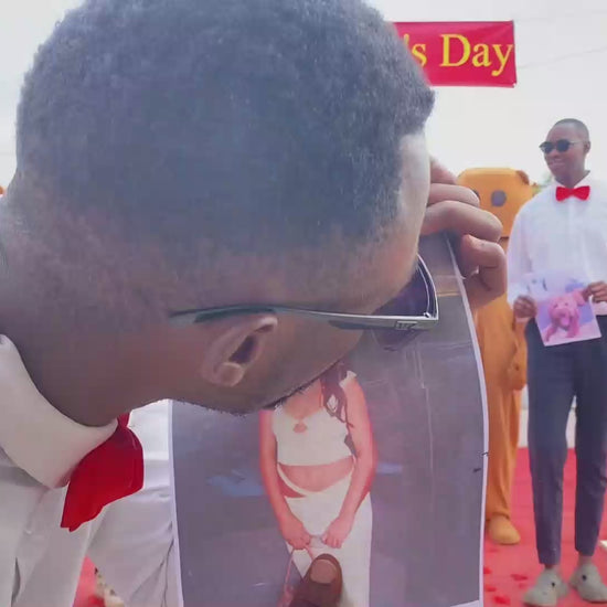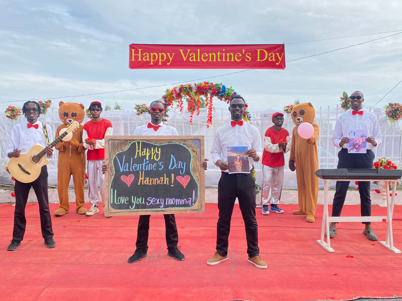 Die Afrikanische Band wird für Sie singen, tanzen und Sie grüßen. Sie können bis zu 20 Wörter auswählen, die sie vortragen werden und bis zu 15 Wörter wählen, die sie auf die Tafel schreiben. Außerdem können Sie ein Bild hinzufügen, welches in die Kamera gezeigt wird.
